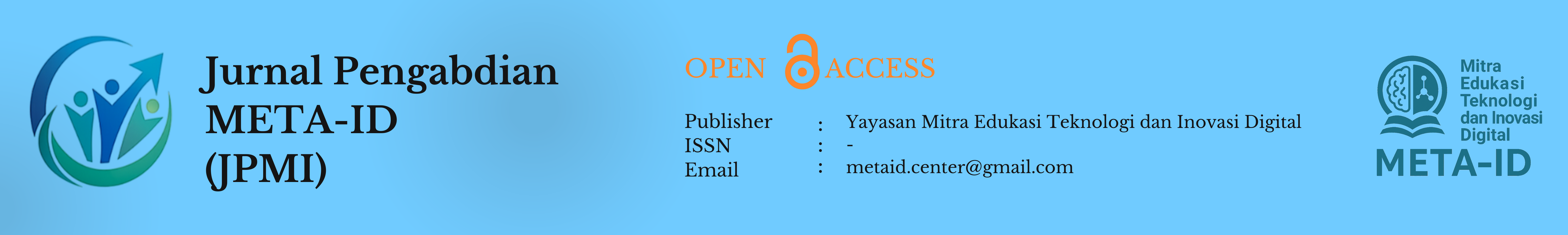 Jurnal Pengabdian META-ID (JPMI) merupakan jurnal ilmiah yang memuat artikel-artikel hasil kegiatan pengabdian kepada masyarakat yang dilakukan oleh para akademisi di seluruh Indonesia, termasuk dosen, guru, dan praktisi pendidikan. JPMI menjadi wadah publikasi untuk menyebarluaskan inovasi, solusi, serta dampak nyata dari program pengabdian masyarakat yang berorientasi pada peningkatan kualitas pendidikan, pemberdayaan masyarakat, dan pembangunan berkelanjutan.